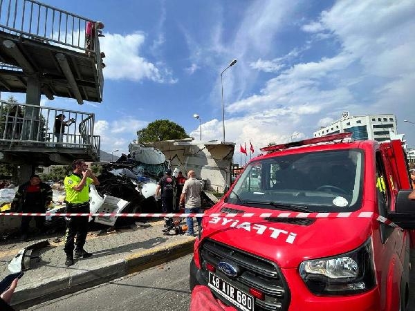 Milas'ta üst geçidin ayağına çarpan TIR'ın sürücüsü öldü