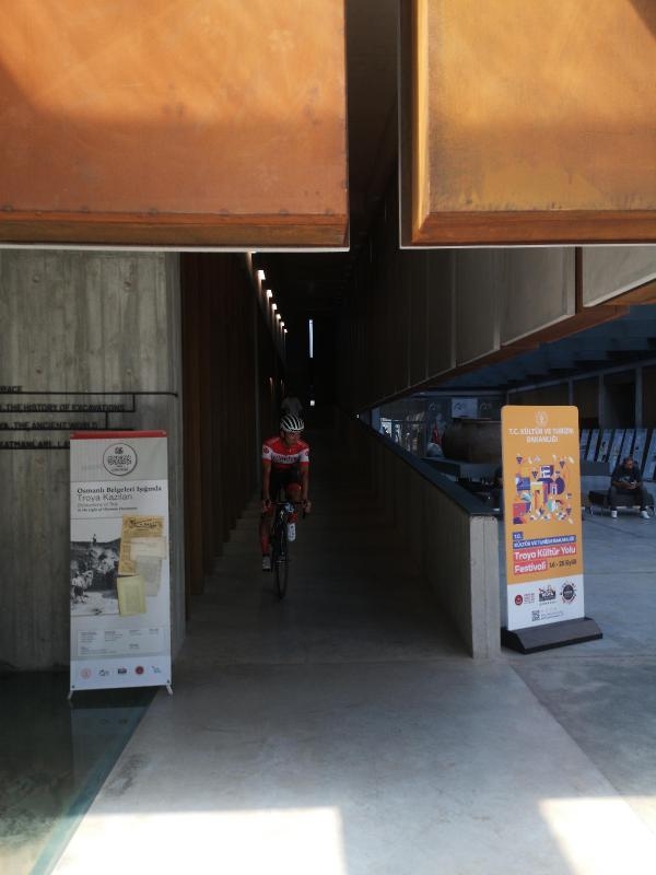 ORTEKİZ'de 2011'de yapılan '23 Yaş Altı Gençler Pist Bisikleti Avrupa Şampiyonası'nda şampiyon olan milli sporcu Ahmet Örken, çevreci müze vurgusu için bisikletiyle Çanakkale'de 5 bin yıllık Troya Ören Yeri'nin girişindeki ödüllü Troya Müzesi'nin içerisinde dolaşarak terasa çıktı.