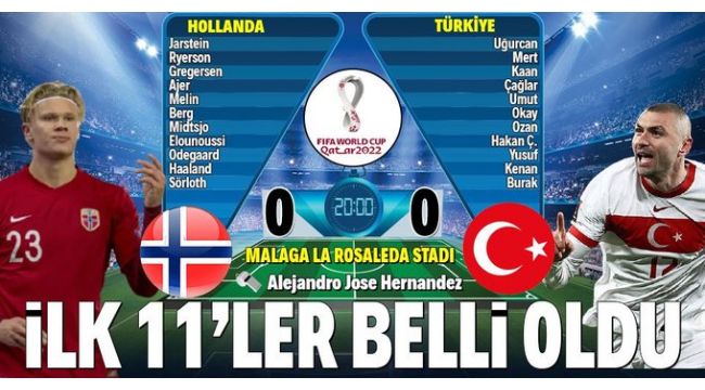 Dünya Kupası Elemeleri G grubunda mücadele eden A Milli Takım, İspanya'nın Malaga kentindeki La Rosaleda Stadı'nda Norveç ile karşı karşıya geliyor. Hakem Alejandro Jose Hernandez'in yönettiği maçta iki takımda da hedef mutlak galibiyet.