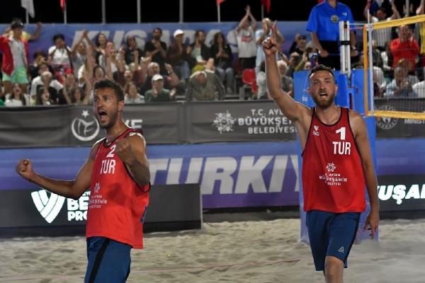 Kuşadası'nda dünyanın en önemli plaj voleybolu organizasyonları arasında gösterilen 'Beach VW Pro Tour Kuşadası Challenge' heyecanı tüm hızıyla sürüyor. Ana Tabloda yer alan Hasan Hüseyin Mermer - Safa Urlu ikilisinden oluşan Plaj Voleybolu Milli Takımı, ilk maçında Norveç'e 2-0 mağlup olmasına rağmen Avusturalya'yı 21-19 ve 21-18'lik setlerle 2-0 mağlup ederek adını son 18 takım arasına yazdırdı.