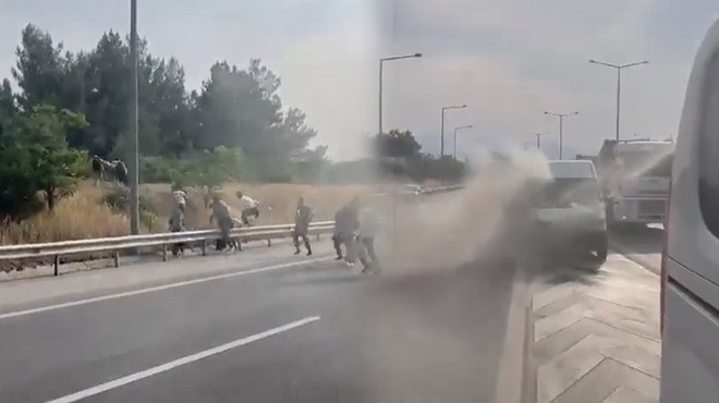 Olay, dün akşam saatlerinde Buca Otoyolunda meydana geldi. Seyir halindeki kapalı kasa minibüsün motor kısmından dumanlar çıktığını fark eden sürücü, aracı yolun orta kısmındaki refujde durdurdu. Kısa sürede dumanla kaplanan minibüsten aralarında çocukların da bulunduğu onlarca göçmen inerek, araç trafiğinin yoğun olduğu otoyolda tehlikeli bir şekilde yolun kenarına doğru koştu. Şans eseri herhangi bir kazanın yaşanmadığı olay sırasında yol kenarına ulaşan kaçak göçmenler ormana girerek izlerini kaybettirmeye çalıştı. Bu sırada yoldan geçen mikser aracı yanan minibüsün yakınında durdu ve su sıkarak araç yangınına müdahalede bulundu.
