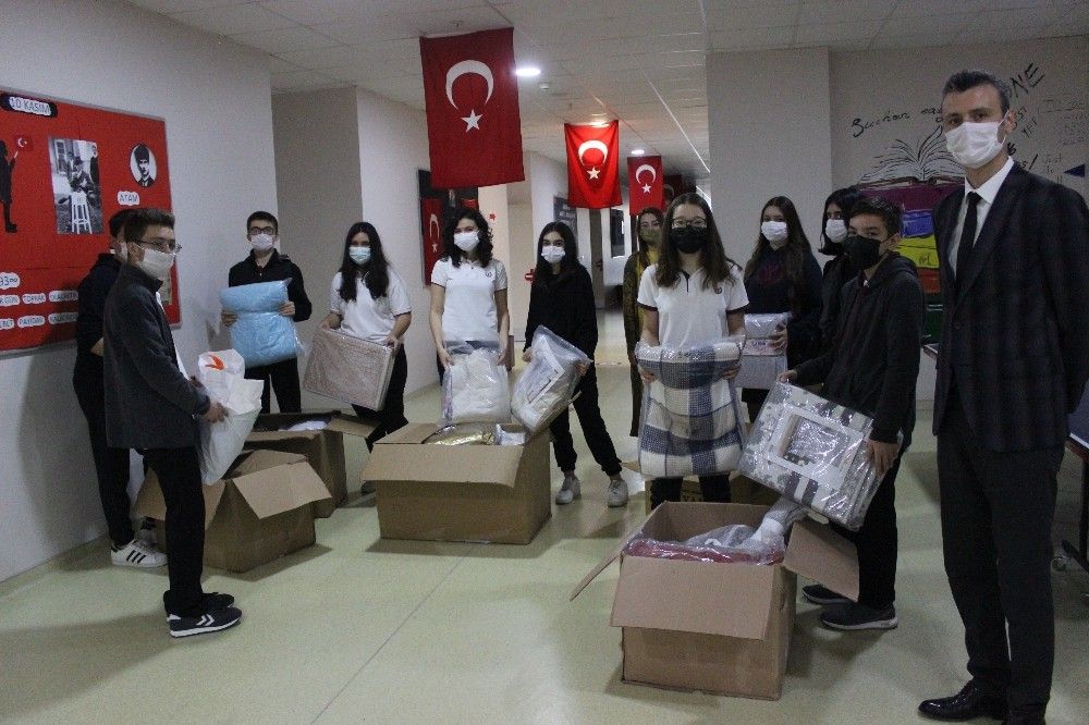 Bursa'daki bir okulun öğrencileri, İzmir'deki deprem zedelere yardımcı olmak için seferber oldu. Minik kalpler ve aileleri, battaniyeden dezenfektana, maskeden kıyafete kadar 10 bine yakın ürünü kargo ile İzmir'e gönderdi