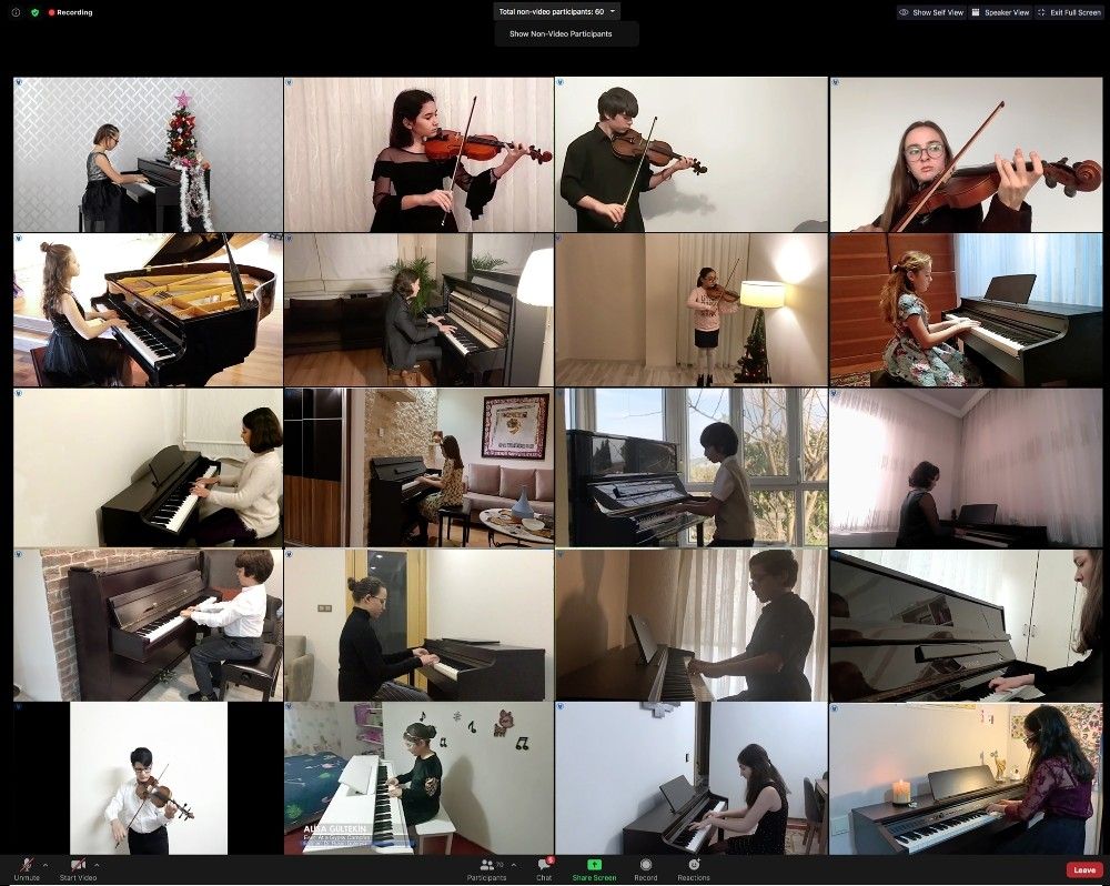 Bugüne kadar piyanodan kompozisyona ulusal ve uluslararası yarışmalarda onlarca derece kazanan başarılı öğrenciler yetiştiren Yaşar Üniversitesi Sürekli Eğitim Merkezi Müzik Akademisi, Covid-19 pandemisi nedeniyle eğitimlerini uzaktan sürdürmeye devam ediyor. Çevrim içi öğrenme ortamı sayesinde eğitmenleriyle birebir ders yapma ve bilgi paylaşımında bulunma imkanı bulan öğrenciler, yeni yıl konseri ile de becerilerini bir kez daha ortaya koydu.