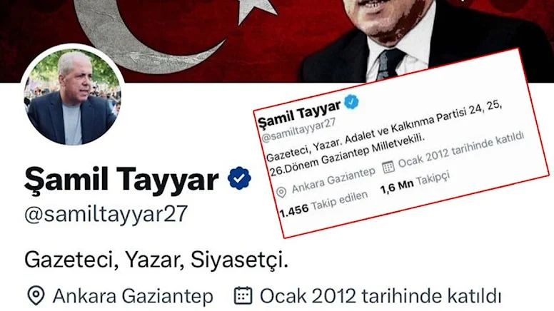 AKP MKYK listesinde üstü çizilen eski Gaziantep milletvekili ve AKP MKYK Üyesi Şamil Tayyar, sosyal medya profilindeki bioda yer alan, “Gazeteci, Yazar, Adalet ve Kalkınma Partisi 24, 25, 26. Dönem Gaziantep milletvekili” bilgisini kaldırarak, “Gazeteci, Yazar, Siyasetçi” bilgisini koydu.