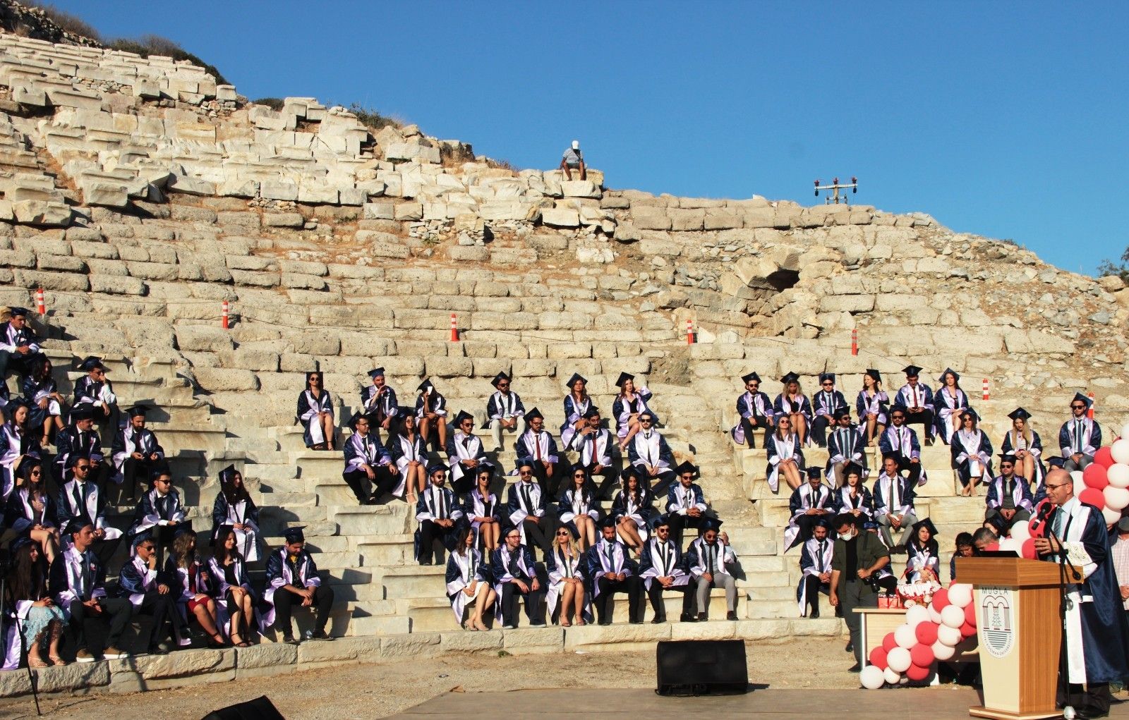 Pandemi döneminde yüz yüze eğitim veren Muğla Sıtkı Koçman Üniversitesi Tıp Fakültesi'nden mezun olan 85 doktor diplomalarını tarihin ilk tıp okulunun kurulduğu Muğla'nın Datça ilçesindeki antik Knidos kentinde aldı.