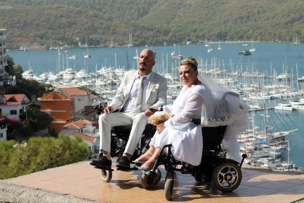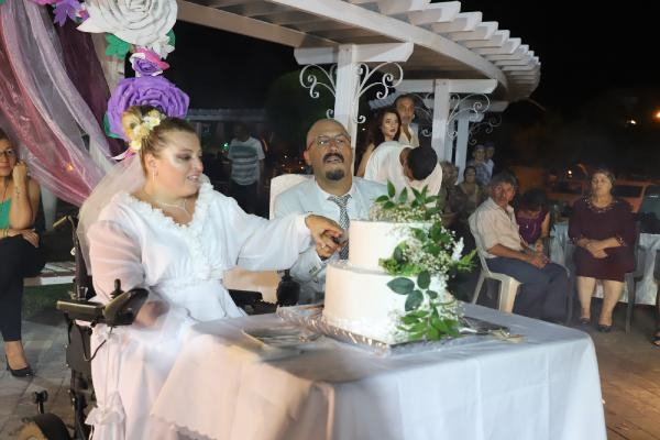MUĞLA Büyükşehir Belediyesi engelli vatandaşlardan Aysel Aslan ve Yusuf Serik'in dünyaevine girmesi için Sende Gel Engelsiz Kafe'de düğün organizasyonu düzenledi. Düzenlenen organizasyonda Aysel ve Yusuf dünyaevine girdi.
