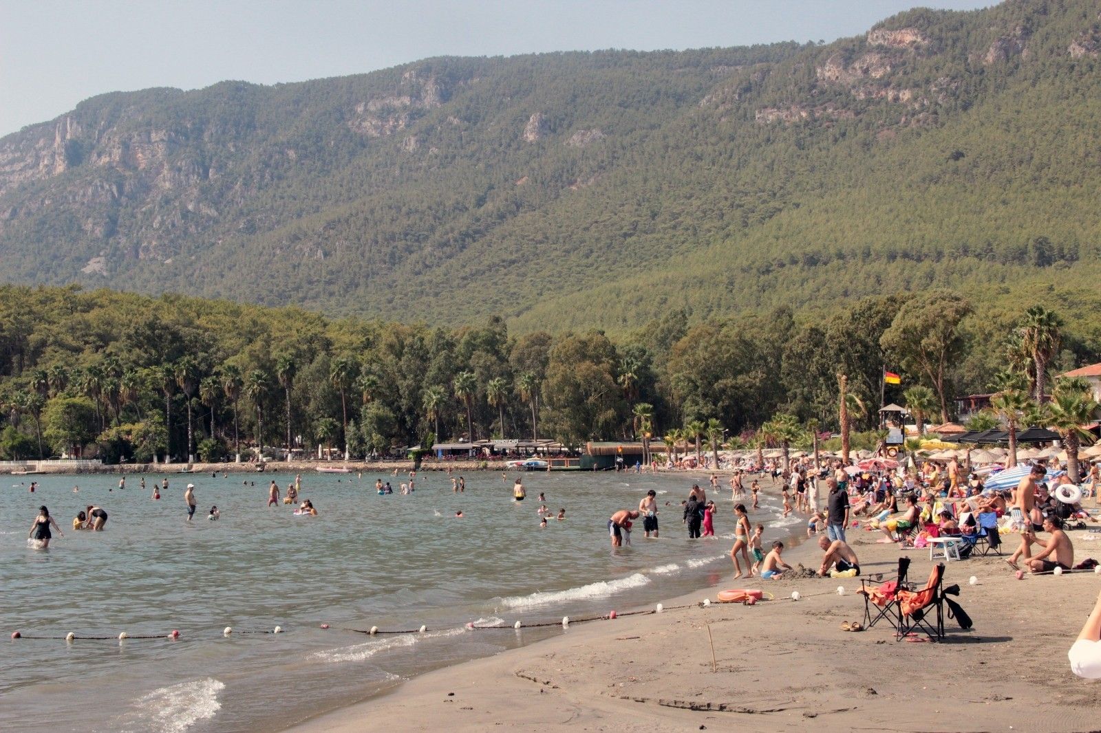Muğla'nın önemli turizm beldesi Sakin Kent unvanlı Ula'nın Akyaka Mahallesi hafta sonu yazdan kalma günleri aratmadı. 300 metrelik sahilde boş şezlong ve şemsiye kalmazken, denizde binlerce vatandaş sıcak yaz günlerinin son serinliğini üzerlerinden atmaya çalıştı.