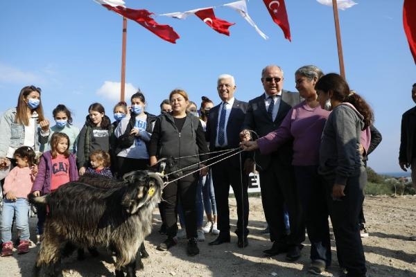 MUĞLA Büyükşehir Belediyesi tarafından kadın üreticiler için başlatılan kıl keçisi desteği kapsamında Datça ilçesinde keçi dağıtımı yapıldı.