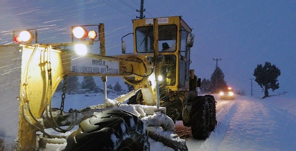 Muğla'nın yüksek bölgelerinde meydana gelen kar yağışı nedeniyle Menteşe ilçesi Yılanlı ve Seydikemer ilçesi Yayla Mahallesi yollarında Muğla Büyükşehir Belediyesi ekipleri tarafından ulaşımın aksamaması için gece saatlerinde kar küreme ve tuzlama çalışmaları yapıldı.