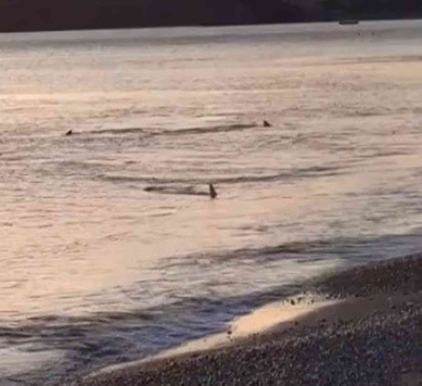 Sürüyü takip ederek kıyıya kadar geldikleri tahmin edilen köpek balıkları bölgede şaşkınlık oluşturdu.