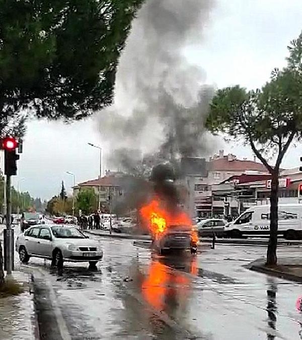 Muğla'da seyir halindeki otomobil, alev alev yandı