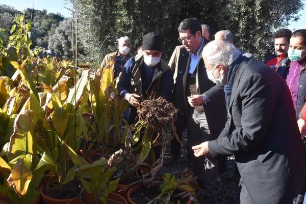 Zerdeçal ve zencefilde dışa bağımlılığı azaltmak için desteklerin sürdüğünü söyleyen Muğla İl Tarım ve Orman Müdürü Barış Saylak, "Katma değeri yüksek sebze ve meyve üretiminin desteklenmesi amacıyla yapmış olduğumuz Bitkisel Üretim Genel Müdürlüğü İle uygulamakta olduğumuz proje sonucunda, Milas'ın Dörttepe Mahallesi'nde yetiştiricimiz Adnan Akar'ın ARGE çiftliğinde ilk zerdeçal hasadını hep birlikte yapıyoruz. Geçen yıl mart ayında saksılara diktiğimiz zerdeçal ve zencefillerin hasadını bugün yapıyoruz. Muğla'da 3 noktada da zerdeçal üretimi için geçtiğimiz yıl, başlatmış olduğumuz çalışmada Datça Emecik'te, Milas'ın Hasanlar Mahallesi'nde sera ve örtü altında, burada saksılarda fidelerimizi toprakla buluşturmuştuk. Daha ilk yıl olmasına rağmen müthiş bir verim bunun sevincini yaşıyoruz. Amacımız üreticimizin katma değeri yüksek sebze ve meyve yetiştirerek, sosyal refahını artırmak. Aynı zamanda sadece bir ürün olarak değil ambalajlanmış marka değeri ve katma değeri yüksek gelir elde etmesi için de ARGE çalışmalarımız devam ediyor. Zerdeçal ve zencefil özellikle Covid-19 pandemi sonrasında tüm dünyada şifa kaynağı olarak gösteriliyor. Yurdumuza da Hindistan, Çin gibi uzak doğu ülkelerinden ithalatı yapılıyor. Yaklaşık her yıl 25 ve 50 milyon dolar arası ücret ödüyoruz. Biz bugün bunları gördükten sonra inşallah önümüzdeki süreçte kendi yerli ve milli zerdeçal ve zencefilimizi yetiştirerek piyasaya yurttaşlarımızın tüketimine sunmuş olacağız. Katma değeri yüksek, sebze ve meyve yetiştiriciliğinin desteklenmesine 1,5 milyon liralık proje desteği sağlandı. Biz fidelerimizi, rizomlarımızı üreticilerimize teslim ettik. Dikimde destek verdik. Üreticilerimiz başvurdukları takdirde desteklerimiz devam edecek" dedi.
