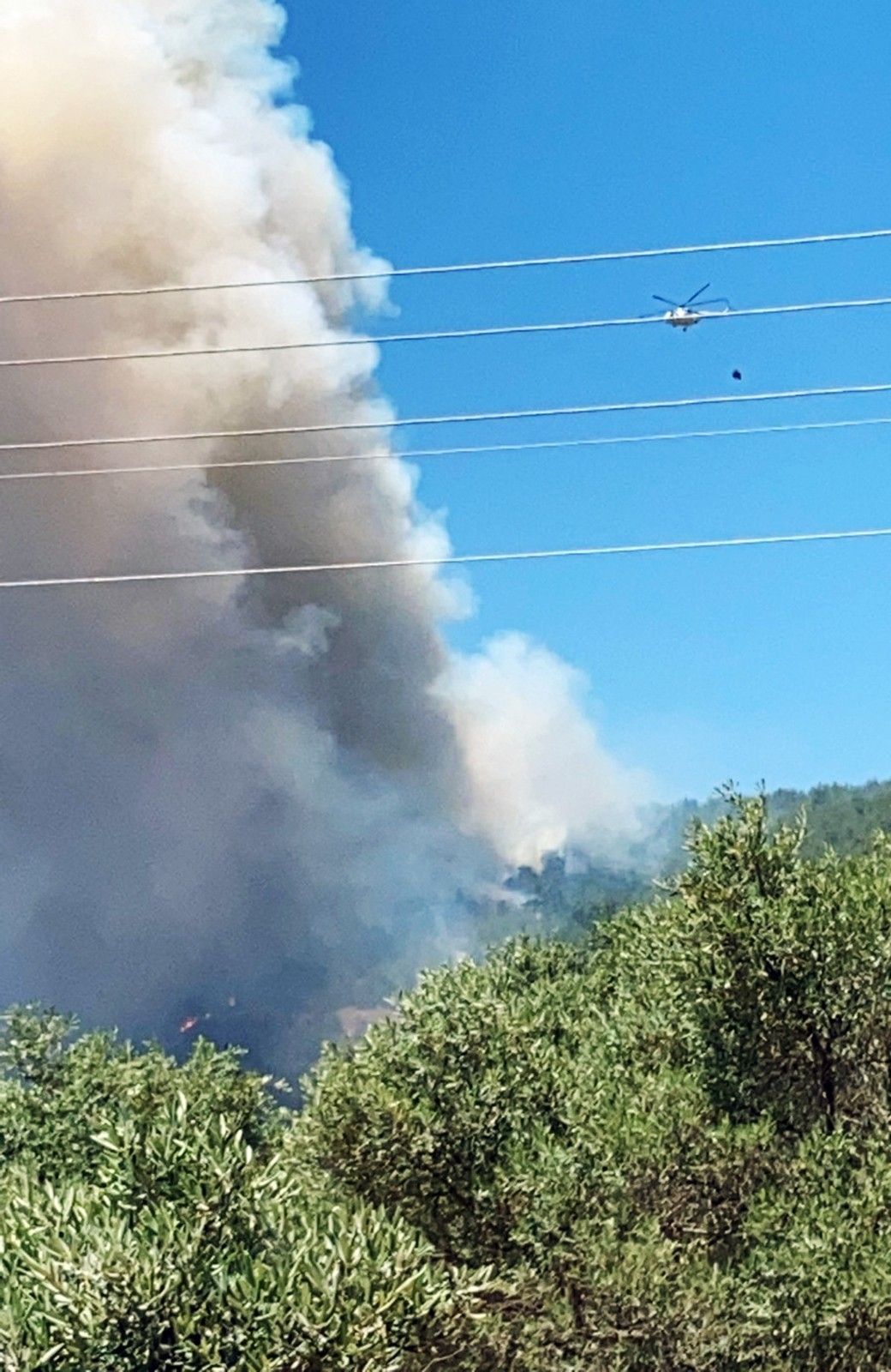 Çıkış nedeni henüz belirlenemeyen orman yangınına havadan üç helikopter karadan da çok sayıda arazöz ve yangın söndürme işçisi müdahale ediyor. Yangına 4 ilk müdahale aracı, 45 arazöz, 4 dozer, 11 su tankeri ve havadan 6 yangın söndürme helikopteri müdahale ediyor.