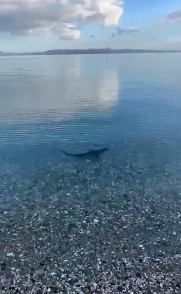 MUĞLA'nın Milas ilçesinde kıyıya yakın noktada, 1 metre uzunluğunda kum veya mavi köpek balığı olduğu değerlendirilen köpek balığı bölge görüntülendi.