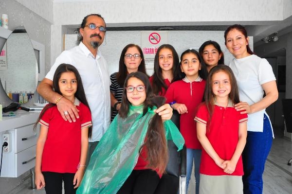 Saçını bağışlayan 4'üncü sınıf öğrencilerinden Buğlem Çelik (10) ise "Öğretmenimiz sayesinde bu proje ile Kanser Savaşçıları Derneği destek olduk. Saçımı bağışladığım için çok mutluyum" dedi. (DHA)