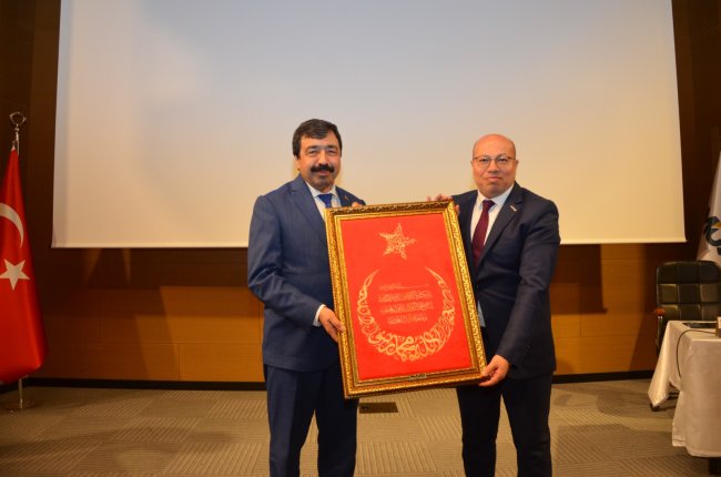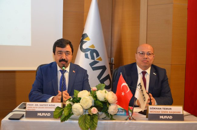 Programın sonunda MÜSİAD İzmir Başkanı Gökhan Temur tarafından İzmir Katip Çelebi Üniversitesi Rektörü Prof. Dr. Saffet Köse’ye teşekkür edilerek, hediye takdiminde bulunuldu.
