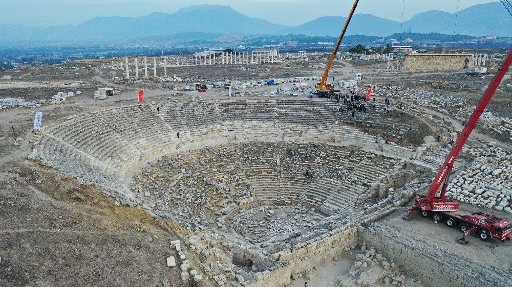 Restorasyon çalışmalarına Büyükşehir Belediyesi ile birlikte destek verdiklerini kaydeden Bakan Varank, "Bu antik tiyatro gün yüzüne çıkartıldığında hem burası bir ziyaret mekanı olacak hem de gerçek bir tiyatro olarak kullanılacak. Biz de Bakanlık olarak Kalkınma Ajansıyla buranın kazı çalışmalarına maddi destek sağlıyoruz" ifadelerini kullandı.