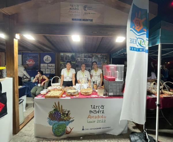 Narlıdere Belediyesi Kadın Girişim ve Üretim İşletme Kooperatifi, Terra Madre Anadolu 2022 boyunca ziyaretçileri Narlıdere standında ağırlayacak. Slow Food standında, nar suyundan reyhan şerbetine, şevketi bostandan enginarlı pilava kadar birçok yerel lezzet ziyaretçilere ikram edilecek. İlçede hizmet veren gıda işletmeleri de Terra Madre Anadolu 2022 kapsamında deniz mahsullerinden pastane ürünlerine kadar birçok ürünü fuar boyunca vatandaşlarla buluşturacak.
