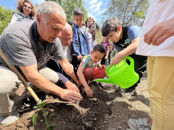 İZMİR'in Narlıdere ilçesindeki Park Orman'da çocuklar için 'ekolojik tarım bahçesi' hayata geçirildi. Ekolojik tarım bahçesinin açılışında Narlıdere Belediye Başkan Ali Engin, Narlıdere Kaymakamı Suat Dervişoğlu ve törene katılanlar çocuklarla birlikte fidan diki, can suyu verdi.
