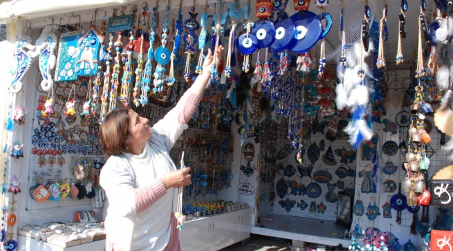 1996 yılında Nazarköy'e gelin gelen 42 yaşındaki Esma Özşahin, “Nazar boncuğu zaten uzun yıllar burada vardı. Biz de kadınlar olarak sadece eşlerimizin yaptığı boncukları evde ipe dizip toptancılara yolluyorduk. 2004 yılında kadınlar olarak belediyenin takı tasarım kurslarına katıldık. Ardından Kemalpaşa Kaymakamlığı tarafından 20 stant kuruldu. Biz bu şekilde kadınlar olarak bu işe adım atmış olduk. 2015 yılında Orman Genel Müdürlüğünün verdiği hibe ve kredi, elimizi çok rahatlattı. 10 tane mal alabiliyorken hibe sayesinde 100 tane mal alabilmeye başladık. Daha çok malzeme aldıkça daha çok büyüdük. Faiz olmadığı için o parayı kredi gibi düşünmedik. 3 sene boyunca az miktar ödediğimiz için bizi zorlamadı. Ben aynı zamanda cam işleme ustasıyım. Bu konuda sertifikam var. İnşallah makinemi alarak burada şaloma boncuk yapmak istiyorum. Burada tasarladığı ürünleri stantta sata kadınlar var, evlerinde tasarlayıp bize satış yapan kadınlar var, kafe işleten kadınlar var. Çalışan kimseye nazar değmez. Biz sabah ‘Bismillah' diyerek dükkanlarımızı açıyoruz. Mavi boncuğun özelliği nedeniyle bize nazar değmez” sözlerine yer verdi.