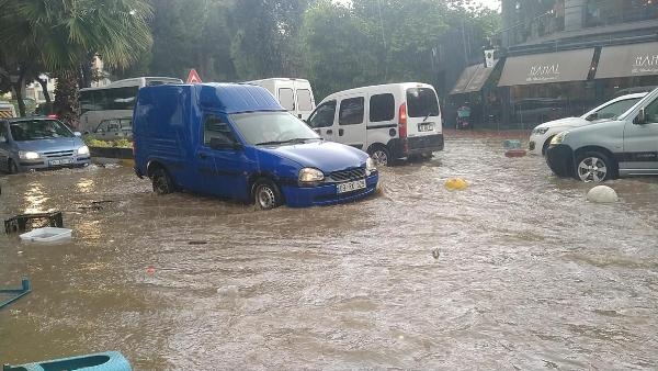 Nazilli'de öğleden sonra başlayan sağanak ve dolu günlük yaşamı olumsuz etkiledi. Ordu Caddesi üzerinde biriken sular nedeniyle araç sürücüleri zor anlar yaşarken, bazı ev ve iş yerlerini ise su bastı. Sanayi çarşısını şehir merkezine bağlayan Albay İbrahim Karamanoğlu Caddesi'nin de suyla dolması üzerine Aydın Büyükşehir Belediyesi Su ve Kanalizasyon Daire Başkanlığı ekipleri, suları tahliye etmek için çalışma yaparken, polis ekipleri ise yolu bir süreliğine trafiğe kapattı. Aniden bastıran yağmura yakalanan vatandaşlar ise çevredeki iş yerlerine ya da saçak altlarına sığınarak korunmaya çalıştı. (DHA)