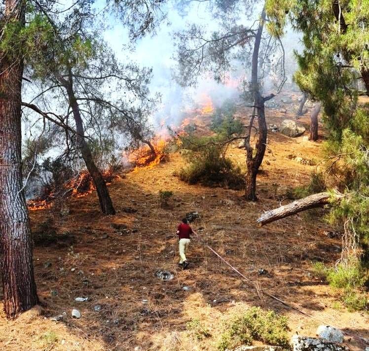 Yangın, kırsal Uzunçam ve Yenice Mahalleleri arasında bulunan tarım arazilerinin bulunduğu makilik alanda saat 16.30 sıralarında çıktı. Edinilen bilgiye göre, alandan dumanların yükseldiğini fark eden vatandaşlar durumu 112 Acil Çağrı Merkezi'ne bildirdi. İhbar üzerine bölgeye Aydın Büyükşehir Belediyesi İtfaiye Daire Başkanlığı ve Muğla Orman Bölge Müdürlüğü yangın söndürme ekipleri sevk edildi. Yangına 2 helikopter ile müdahale edilirken, yangında ayrıca 10 arazöz, iki su tankeri, 100'e yakın personel de görev yapıyor. Rüzgarın şiddeti ile büyüyen sarp arazideki yangın yakın bölgedeki ormanlık alana sıçrarken, ekiplerin söndürme çalışmaları ise devam ediyor.