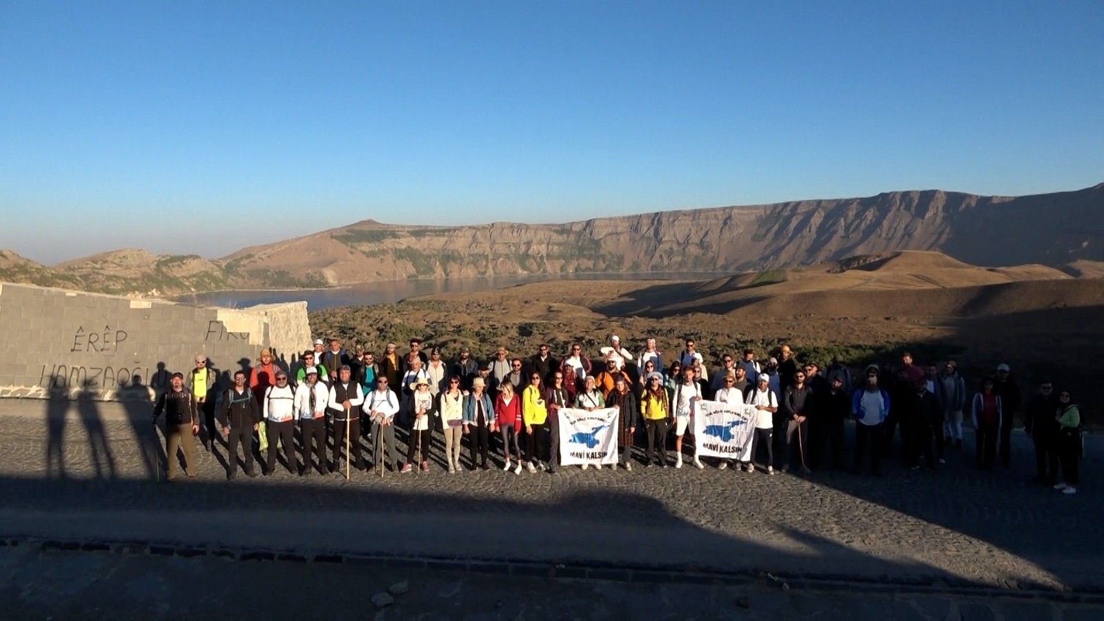 'Van Gölü kirlenmesin mavi kalsın' sloganıyla başlayan yürüyüşte Nemrut çanağını 12 saatte 360 dereceyle dolaşacaklarını belirten Vangölü Aktivistleri Derneği Başkanı Erdoğan Özel, "Nemrut Kalderası, Van Gölü havzasının en nadide yerlerinden bir yer. Volkanik sönmüş bir dağ. İçerisinde Ilık Göl, Soğuk Göl, buhar bacaları, endemik türlerin olduğu çok zengin bir yer. Son zamanlarda 'Kesin Korunacak Hassas Alan' olarak da tescillendi. Nemrut Kalderası, gerçekten turizme kazandırılması gereken çok önemli bir nokta. Amacımız buraya dikkat çekmek, farkındalık oluşturmak ve bu zenginliği tanıtmak. Bu yıl üçüncüsünü düzenliyoruz. Nemrut zirvelerinden tam 360 derece dönecek şekilde bir etkinlik olacak. Yaklaşık 70 kişilik bir sporcu ve aktivist kafilemiz var. Biz bu zirvelerde Van Gölü'nü, Nemrut'un iki gölünü ve Nazik Gölü olmak üzere üç gölü aynı anda görmüş olacağız" dedi.