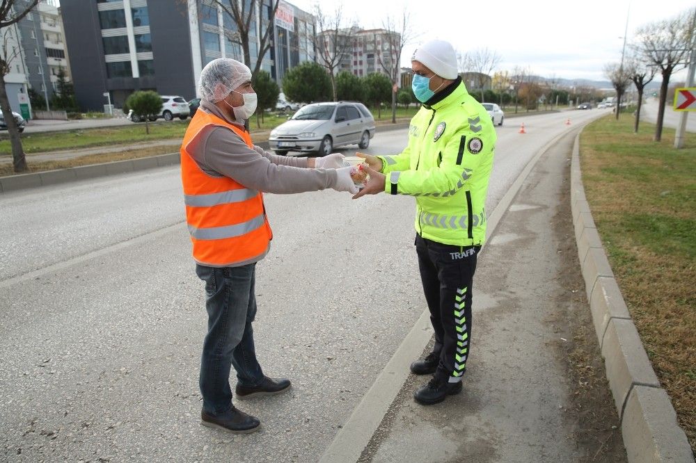 Fethiye, Ataevler, İhsaniye, Karaman, Odunluk, Beşevler, Üçevler, Görükle, Özlüce ve İzmir Yolu üzerindeki 16 kontrol noktası ile 3 polis merkezini tek tek ziyaret eden ekipler, yüzlerce sıcak çorba dağıttı. İkram edilen sıcak çorbalar, soğuk havada denetim yapan polislerin içini ısıttı. Nilüfer Belediye Başkanı Turgay Erdem'e, salgın döneminde kendilerine maske ve dezenfektan başta olmak üzere birçok konuda verdikleri destek için teşekkür eden emniyet güçleri, sıcak çorba ikramından da duyduğu memnuniyeti dile getirdi.