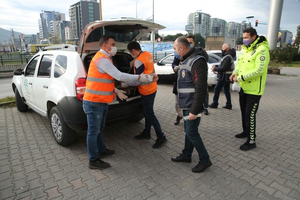Nilüfer Belediyesi, sokağa çıkma kısıtlamasının uygulandığı hafta sonunda, uygulama noktalarında görev yapan emniyet güçlerine sıcak çorba ikramında bulundu