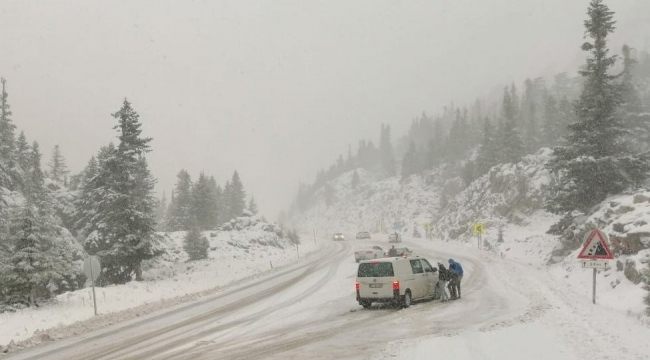 Turizmin başkenti Antalya’ya nisan ayında kar yağdı. Akseki-Seydişehir karayolu kısa sürede beyaza büründü.