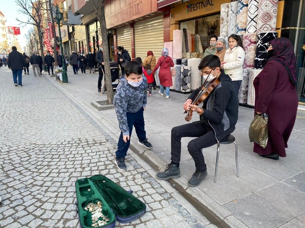 Hiç not eğitimi almayan, kendi çabası ile keman çalmayı öğrenen sokak sanatçısı takdir topluyor.