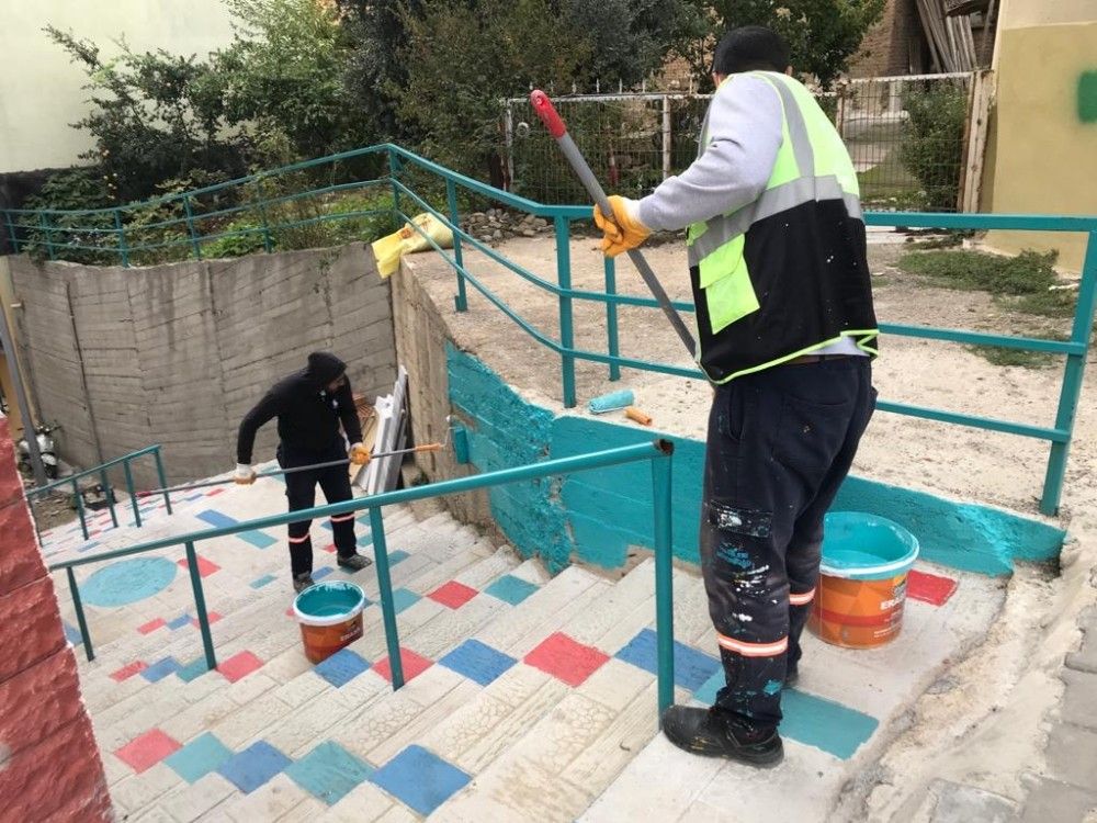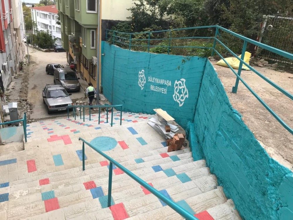 Süleymanpaşa Belediyesi Fen İşleri Müdürlüğü ekipleri tarafından başlatılan çalışma ile Çiftlikönü Mahallesi eski İtfaiye binasının bulunduğu alandan sahile inen merdivenler renklendirildi.