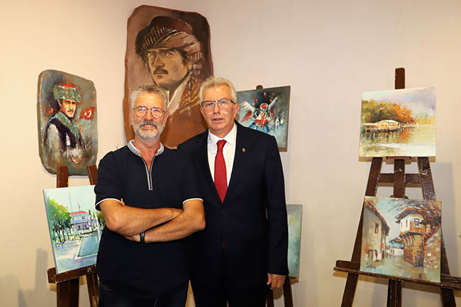 Daha sonra Başkan Eriş, sergi anısı olarak Kasap’a plaket takdim etti. Serginin açılış kurdelesinin kesilmesi sonrası efelerin yer aldığı tablolar ilgiyle incelendi. Kasap, katılımcılara eserleri hakkında bilgiler verdi.
