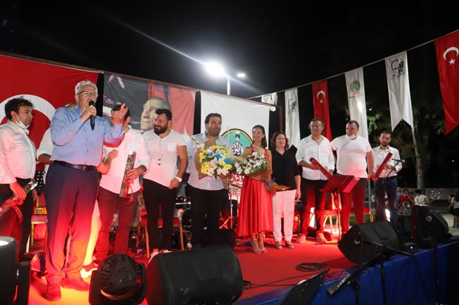 Ödemişli Selda Kesgi, Taner Sevgel ve Kent Orkestrası’nın şarkı ve türküleriyle bayram coşkusu ilerleyen saatlere kadar sürdü. Konserin finalinde İzmir Marşı hep bir ağızdan söylendi. Başkan Mehmet Eriş eşi Selma Eriş ile birlikte sanatçılara çiçek takdim etti.