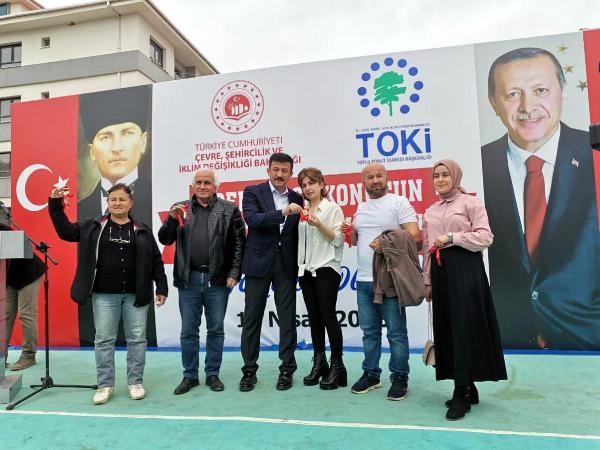 İZMİR'in Ödemiş ilçesinde Toplu Konut İdaresi Başkanlığı'nca (TOKİ) tarafından yapılan 468 konutun anahtarları hak sahiplerine törenle dağıtıldı.