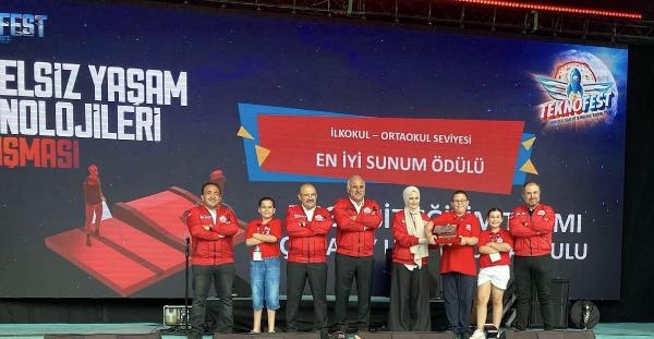 MANİSA Bilim ve Sanat Merkezi öğrencileri Taha Arben Vurgun (12) ve Ayşe Nehir Nalbantoğlu (10), TEKNOFEST Havacılık, Uzay ve Teknoloji Festivali Trabzon etabında 'Engelsiz Yaşam Teknolojileri' alanında 11 bin 309 proje arasından ilk 40'a girip, 'en iyi sunum' ödülünü aldı.
