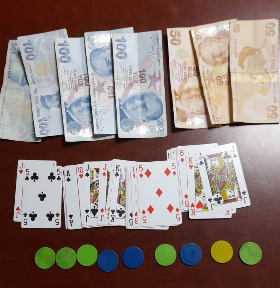 Kumar oynanan masaların üzerinde toplam 650 lira bulunurken, 11 kişiye sosyal mesafe kurallarına uymamaktan ve sokağa çıkma kısıtlamalarını ihlal etmekten yaklaşık 10 bin lira idari para cezası uygulandı.