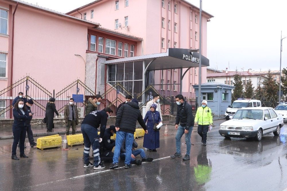 Sivas'ta il emniyet müdürlüğünün önünde karşıdan karşıya geçmek isteye polis memuruna otomobil çarptı. Kazanın ardından göz yaşına boğulan araç sürücüsünün annesi, bir an olsun yaralı polis memurunun başından ayrılmadı.