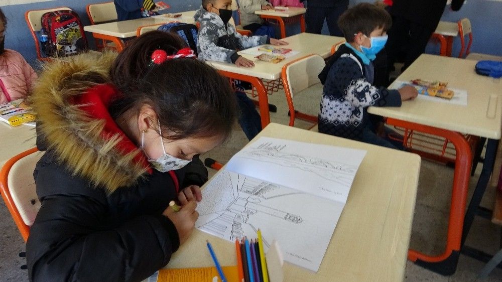 Adana'nın Kozan ilçesinde öğrencilere, tarihi mekanlarının yer aldığı boyama kitapları dağıtıldı.