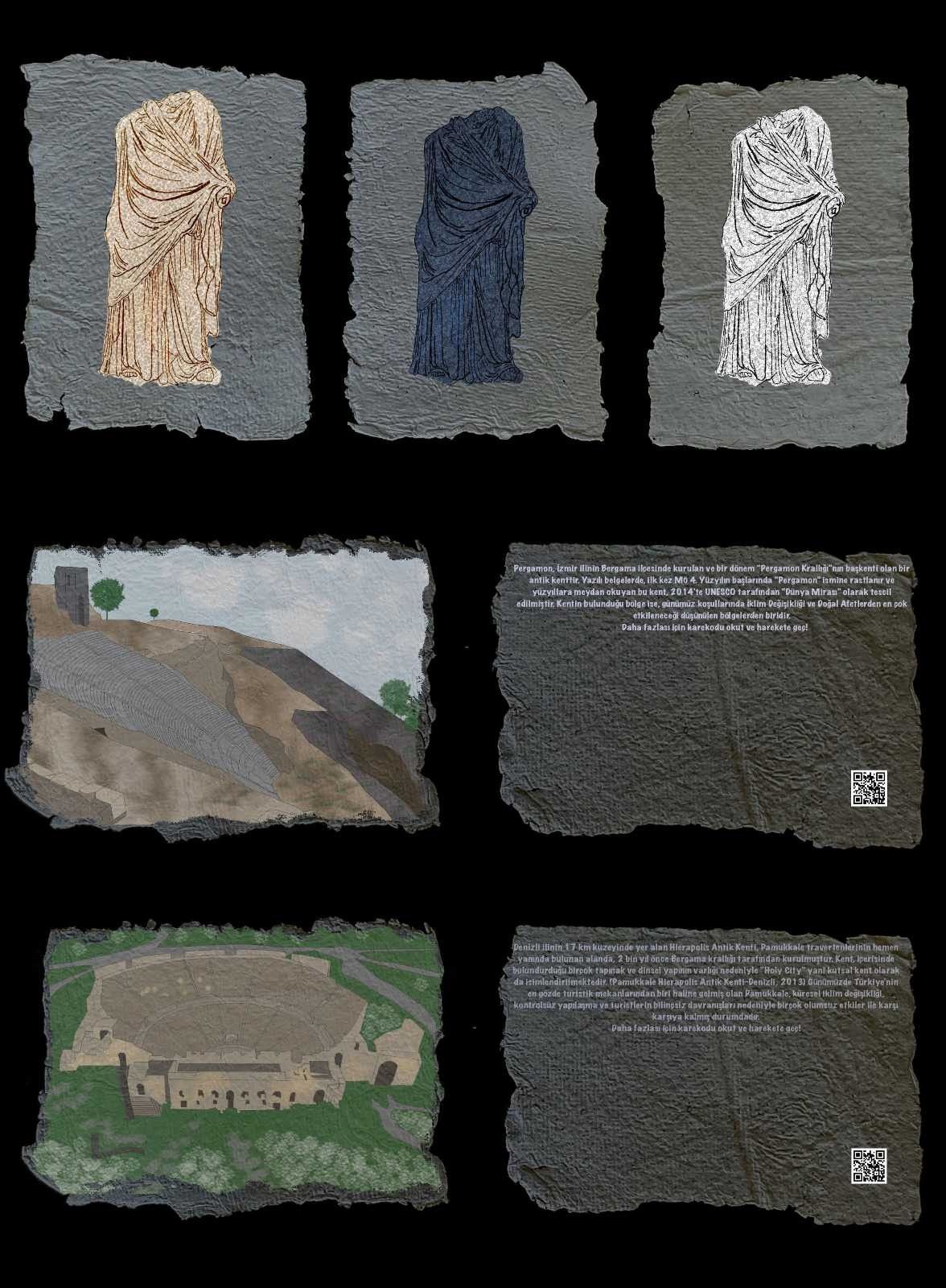 Kullanılmayan kitap sayfalarını parçalara ayırıp hamur haline getirerek yeni kartlar hazırlayan öğrenciler, projede baştan sona kendi fikirlerini kullandı. İklim krizi ile ilgili bilinci artırmak amacıyla, her birinin üzerinde Afrodisias, Hierapolis, Pergamon, Priene antik kentlerinin öğrenciler tarafından yapılan tasarımlarının bulunduğu örnek 9 kartpostal oluşturuldu. Her kartpostalın arkasında antik kentlerle ilgili bilgi içeren bir yazı ve telefona okutulduğunda kişileri projenin internet sitesine yönlendiren bir QR kod bulunuyor. Öğrenciler, ileriki süreçte seri üretime geçip kartpostalların satışını yaparak elde ettikleri geliri çevre derneklerine bağışlamayı planlıyor.