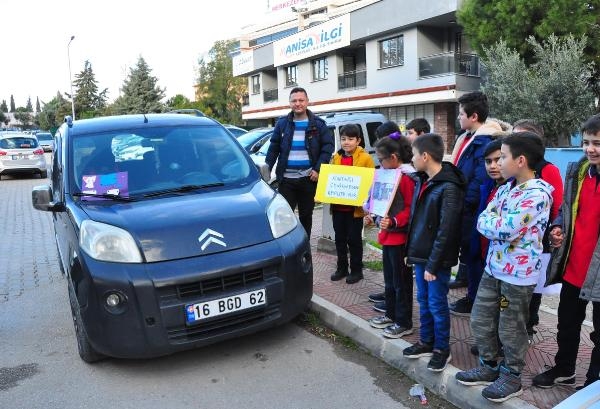 Mehmet Suphi Egemen İlkokulu 4'üncü sınıf öğretmeni Serpil Keskin'in (44) verdiği ödev, öğrencilerce farkındalık projesine dönüştürüldü. Öğrenciler, soğuk havalarda motoru sıcak araç kaputlarına sığınan sokak hayvanlarının ölmemesi için 'Kaputa vur' yazılı renkli görseller hazırlayarak park halindeki araçların camlarına yapıştırdı. Öğrencilerin bu çağrısı, sürücülerce de destek gördü.