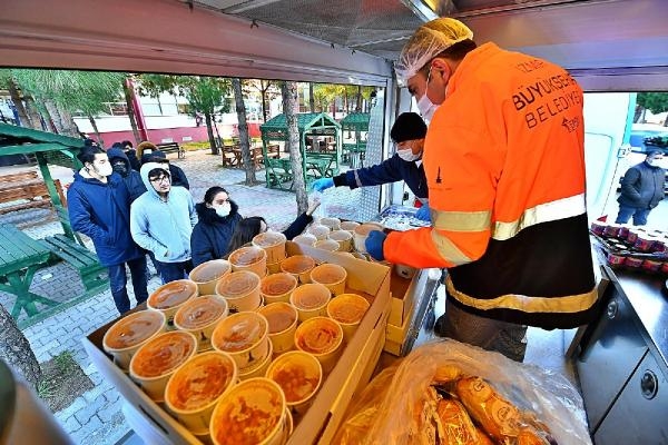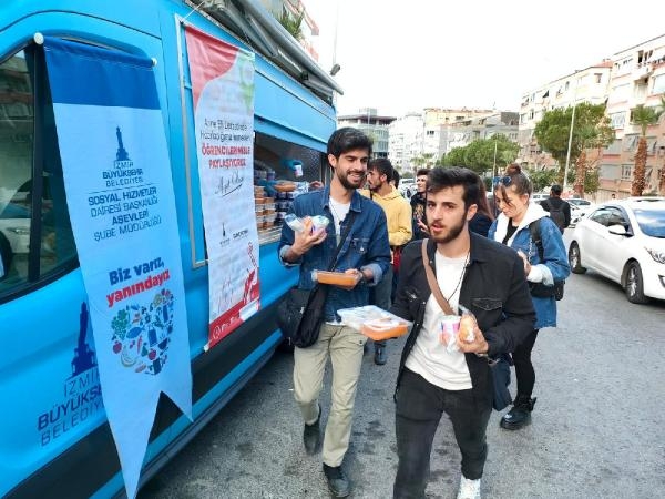 İZMİR Büyükşehir Belediyesi öğrencilere sıcak yemek destek noktalarını 6'ya çıkardı. İzmir Demokrasi Üniversitesi ve Bakırçay Üniversitesi'nin çevresinde de yemek dağıtımı başladı.