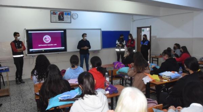 MUĞLA'nın Bodrum ilçesinde, polis ekipleri tarafından liselerde, Kadın Acil Destek (KADES) uygulamasının tanıtımı yapıldı. Öte yandan, Bodrum'da 1 yıl içerisinde KADES üzerinden gelen 600 ihbarın polis ekiplerince çözüme kavuşturulduğu bildirildi.