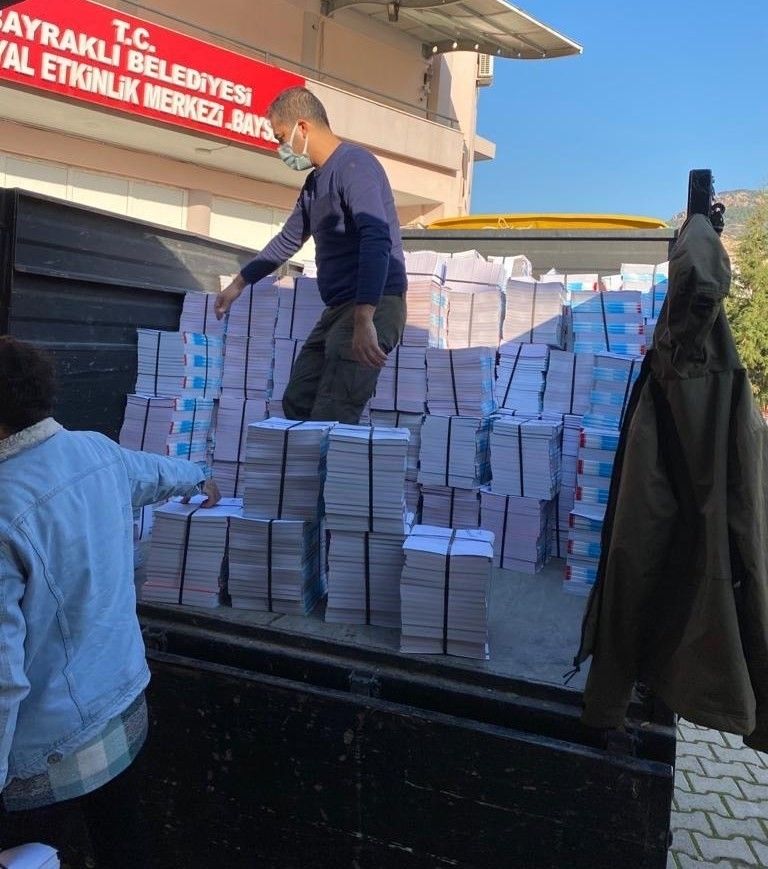 Bayraklı Belediyesi, pandemi süresince eğitimlerine online platformlar üzerinden devam eden Bayraklı Belediyesi Sosyal Etkinlik Merkezi (BAYSEM)'nde eğitim gören öğrencilere soru bankası kitapları dağıtıyor. LGS ve YKS'ye hazırlık için destek sağlayacak kitaplar, öğrencilere ve ailelerine teslim ediliyor.