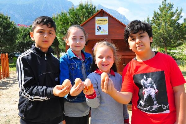 Teneffüs ziliyle birlikte soluğu uygulama bahçesinde alan öğrenciler, ders saatleri dışında da tavuk ve horozları beslemek, onlarla vakit geçirmek için evlerinden yeşillik ve ekmek kırıntıları getiriyor. Velileri de memnun eden uygulamayla öğrenciler, eğlenirken öğrenmenin tadını çıkarıyor. Öte yandan öğrencilerin yetiştirdikleri sebze ve kümesten elde ettikleri yumurtalar öğrencilere pay ediliyor.