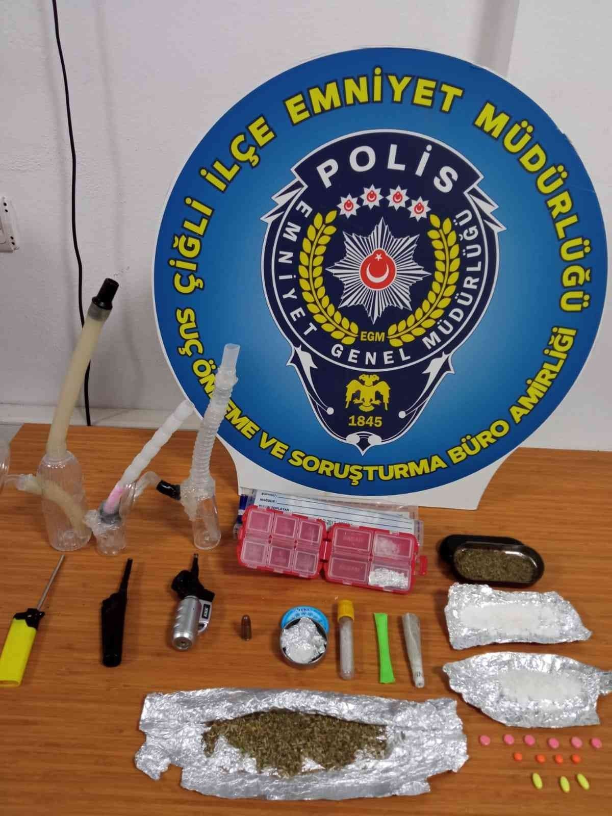 Çiğli İlçe Emniyet Müdürlüğü Suç Önleme ve Soruşturma Büro Amirliği ekipleri, uyuşturucu madde ticareti yaptığını belirlediği A.Ö.'yü (40) yakalamak için çalışma başlattı. Harekete geçen ekipler, şüphelinin ilçeye bağlı Atatürk Mahallesinde oturduğu evi önünde 2 Kasım tarihinde beklemeye başladı. Evin önüne gelen bir ticari taksinin bir süre bekledikten sonra bir el çantası alarak adresten ayrılması üzerine E.Ö. (43) kontrolündeki araç, Ahmet Yesevi Bulvarı üzerinde durduruldu. Yapılan aramada, adresten alınan el çantası içerisinde bir miktar metamfetamin ve esrar maddesi ele geçirildi.