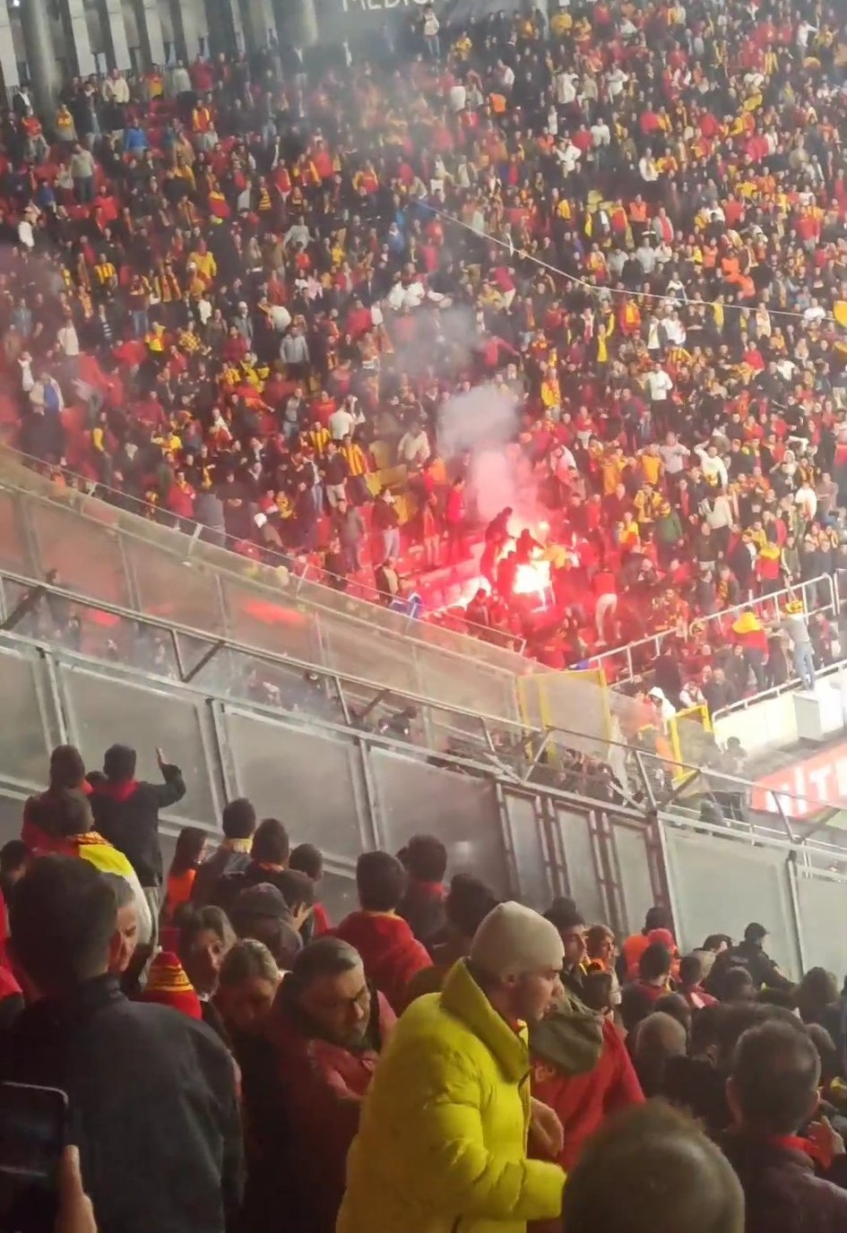Karşılaşmanın 19'uncu dakikasından sonra ortalık karıştı. Altay tribünlerinden Göztepeli taraftarlara fişek atılmasının ardından Göztepe tribününde bazı taraftarlar yaralandı. Bunun üzerine sahaya 2 ambulans girdi.