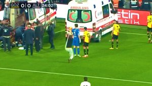 Bu sırada sahaya inen bir Göztepe taraftarı korner bayrağı direğini alarak Altay kalecisi Ozan'a saldırdı. Ozan'a darbeler indiren taraftar, yaka paça gözaltına alındı. Aldığı darbeler sonrasında Ozan yerde kaldı. Güvenlik güçleri sahaya girerek olaylara müdahale etti.