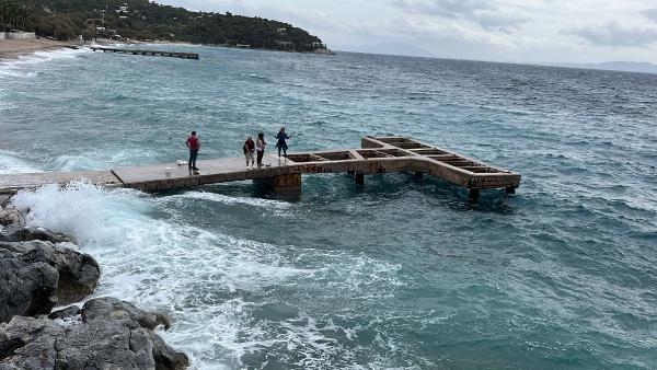 dalgalar nedeniyle iskeleye çarpmaması için denize açıldı. Hırçın dalgalara aldırış etmeyen bir grup amatör balıkçı ise oltayla balık tutmaya çalıştı.
