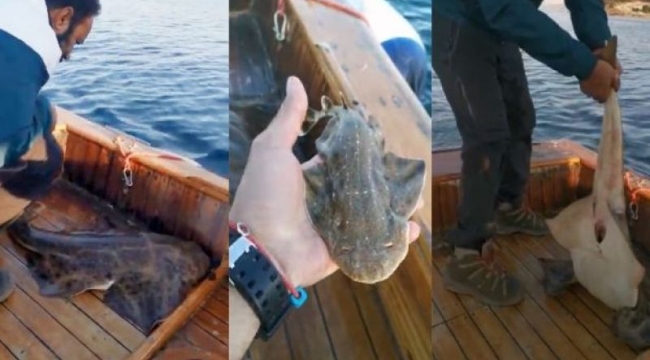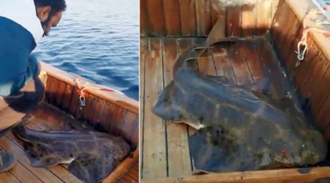 Oltaya takılan köpek balığı, teknede doğum yaptı